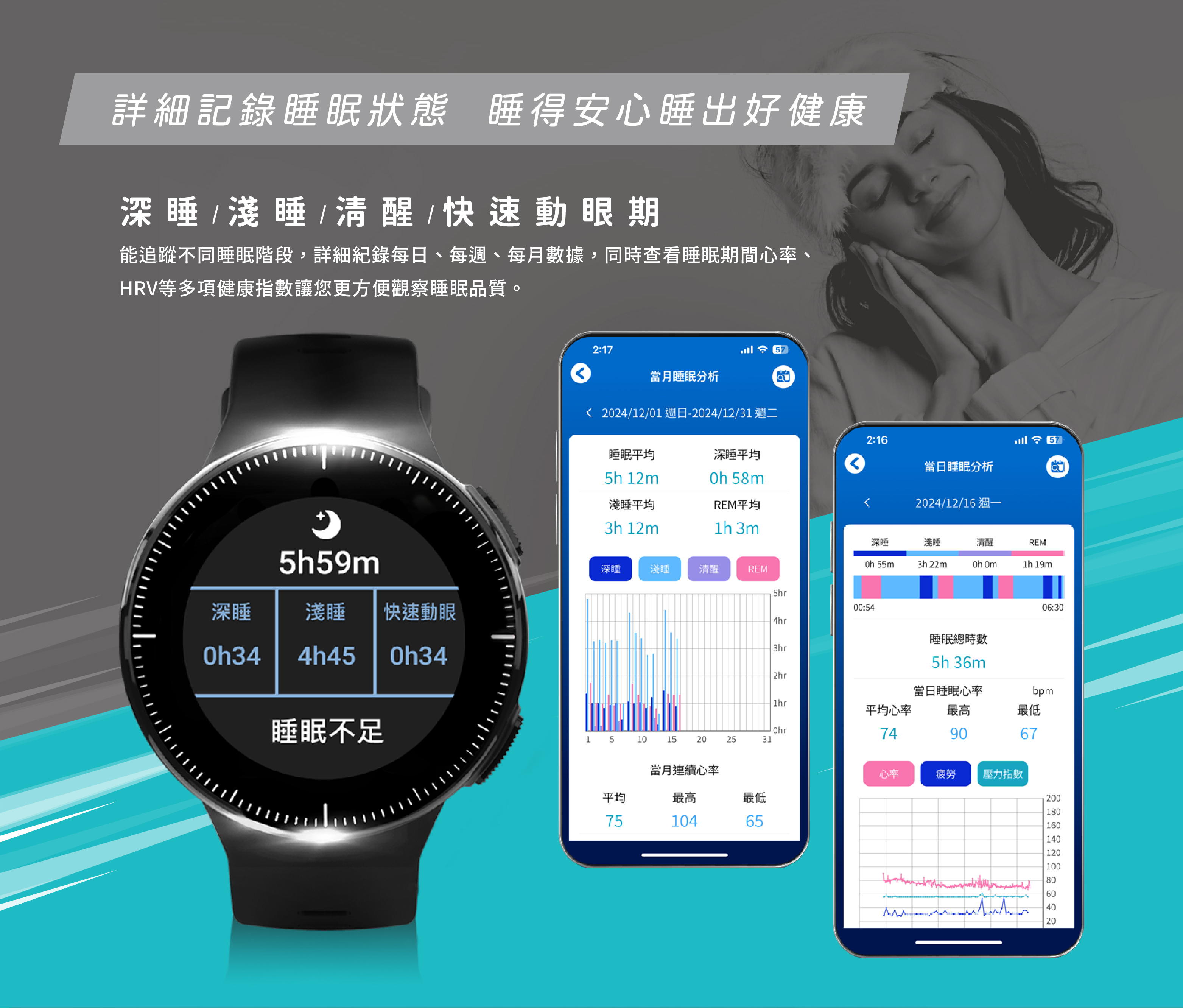 睡眠紀錄 深睡 / 淺睡 / 清醒 / 快速動眼期