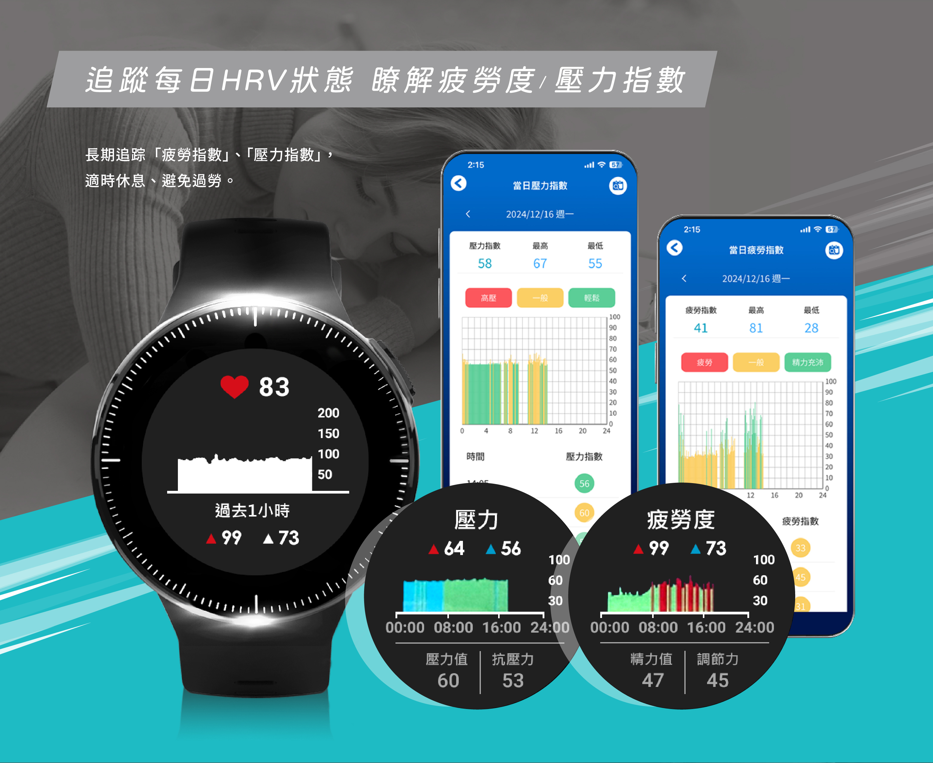 HRV指數分析(壓力/疲勞指數) 5分鐘主動測量一次